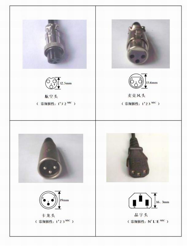 常用3芯充电插头极性示意图